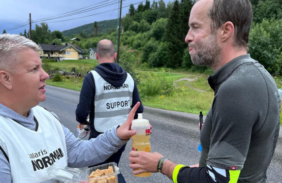 Your job now is to get them out of their wetsuit and start getting them warmed up. Again there is a good chance they will be trembling from the cold and adrenaline, so this makes it pretty tricky. Getting dry clothes on over wet bodies is tough so be prepared for some pulling and yanking. Talcum powder helps with this. When they are dressed, double check the tracker is on the bike somewhere or in their cycle jersey before they set off. Also make sure they are in the correct chain ring for that very steep climb out of the village. It’s no joke if they have got it wrong and I’ve both seen people fall and rip their rear mech off!